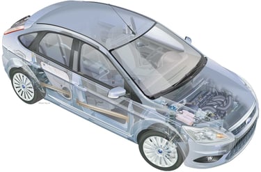 I was approached by an advertising agency responsible for marketing the Ford orchestra who were using instruments made up from parts of the Ford Focus. I produced a ghosted view of the Ford Focus highlighting the components that were used to make the musical instruments.
