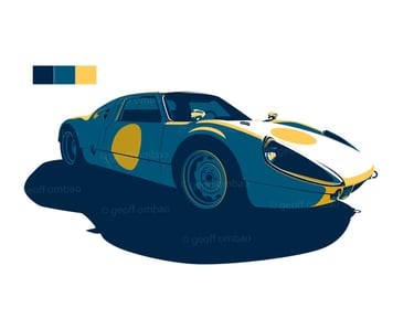 The deep dark blues that I’ve been using lately imply mystery (or perhaps something sinister). I usually compose my images with the car seemingly entering, or exiting the frame to imply that there’s a whole world that exists outside of the image, and that we are peering into it through a window. I present cars in a graphic, minimalist style to create a bold, arresting image. But more importantly, I believe that people want to exercise their imaginations… so by only providing enough of the car to make it recognizable, the viewer is forced to “fill in the blanks” with his/her imagination.