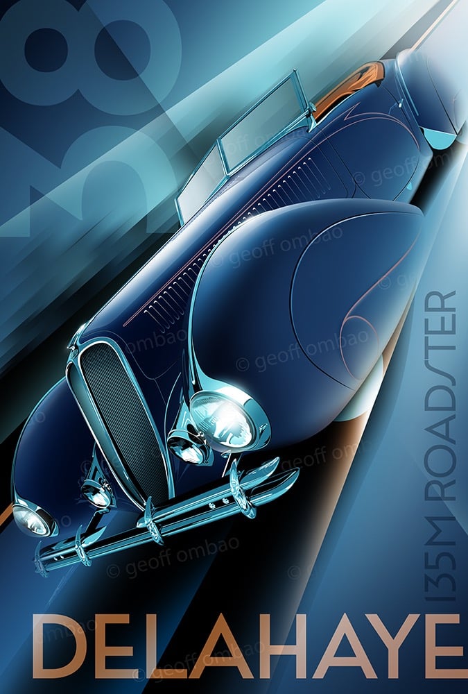 As an Associate Professor at ArtCenter College of Design, Geoff Ombao divides his time between the analytical world of Human Factors and Design Psychology and the evocative 'Golden Age' of automotive aesthetics. As a prolific digital artist, Geoff’s work is a masterclass in the interplay of bold lines, shadows, and sweeping, romantic curves - perfectly capturing the noir-inspired mood of 1930s Art Deco. Today, we sit down with Geoff to discuss his evolution from student to mentor, and the spirit of the “Streamline Moderne" design language.